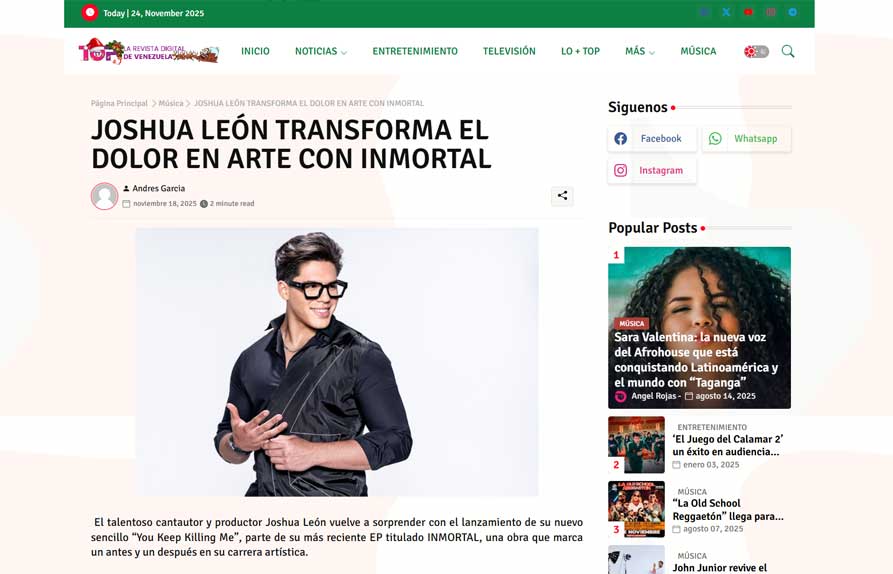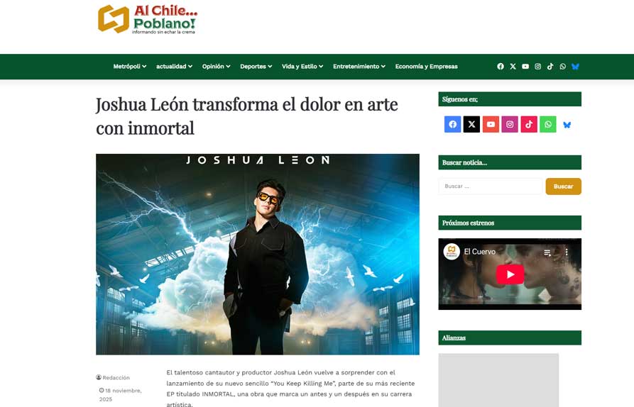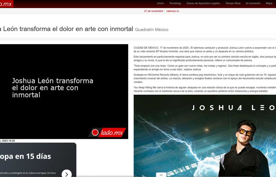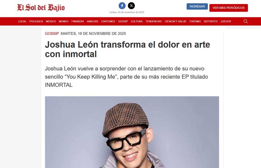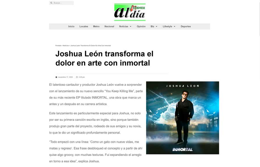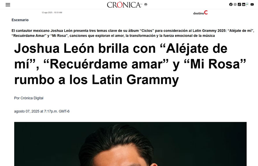 JOSHUA LEON ENTREGA SU VERSIÓN DEL CLÁSICO "ALGO DE MÍ" DE CAMILO SESTO.